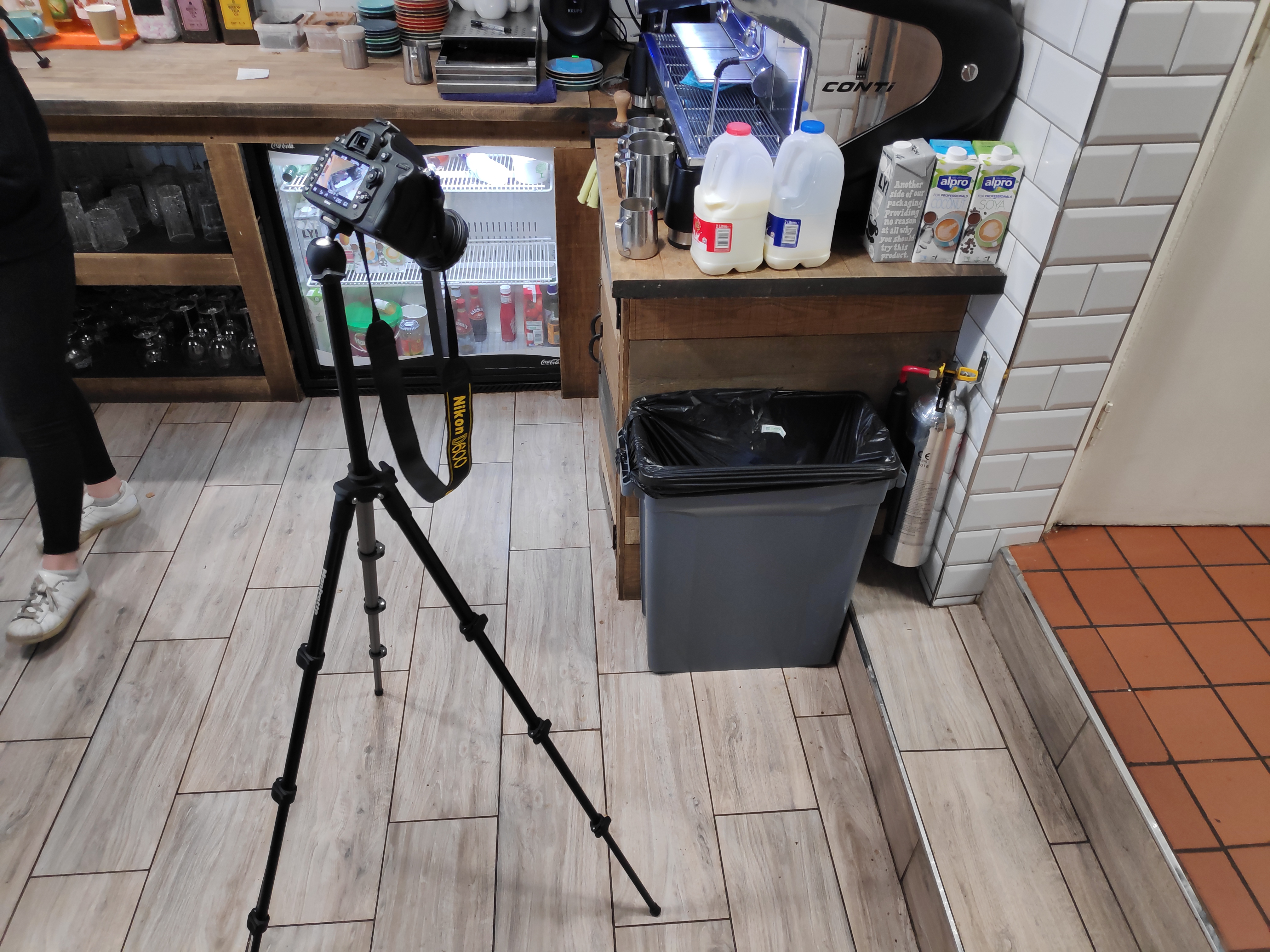 Video recording shots showing milk bottles being thrown away, shots being pulled, hack in use and general shots (Sigma 17-70 mm & Nikon 50 mm)
