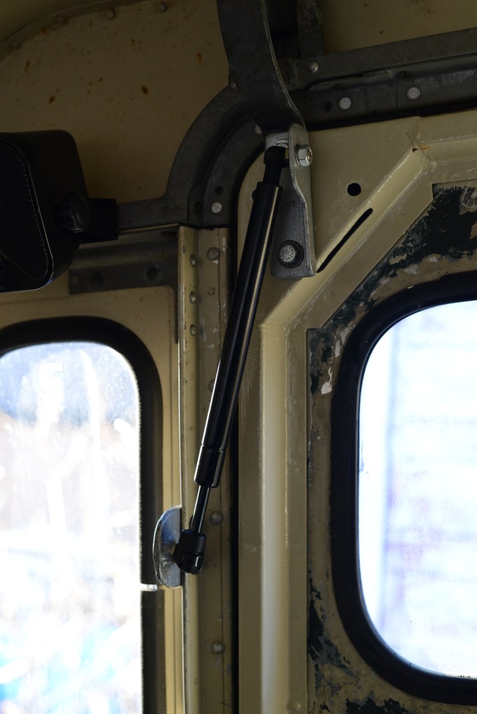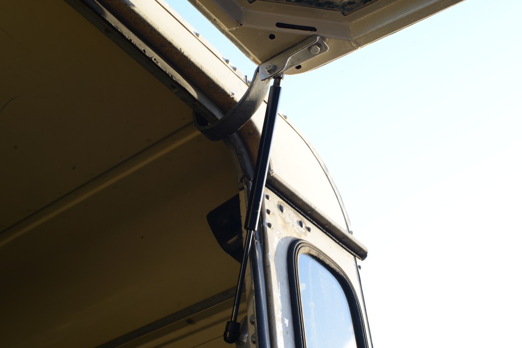 When fitting the tailgate and catflap, I didn’t have the original supports for the catflap. I decided to make a gas strut assembly to lift the rear catflap up, but only use existing mounting holes so that if someone wanted to make it original again, they could.