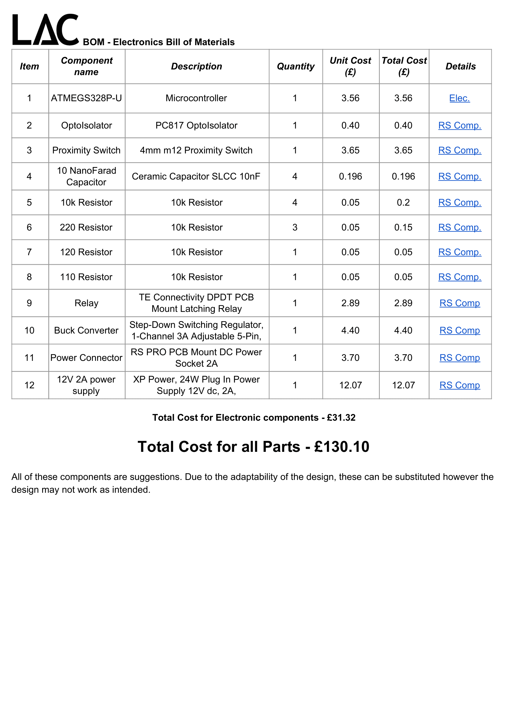 - The electronics are also standardised components and readily avaliable