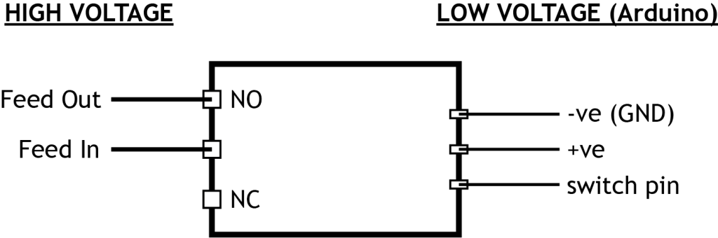 NC (Normally Closed) – When switch is LOW, Relay is connected