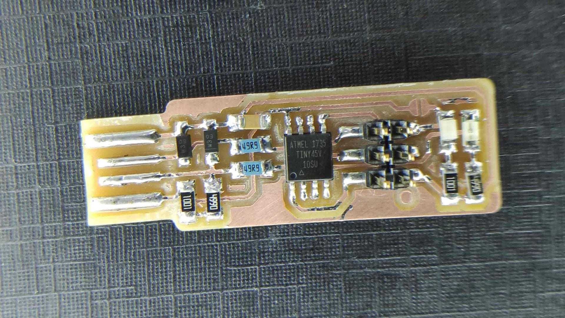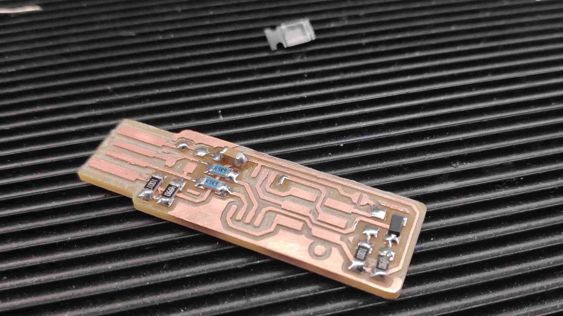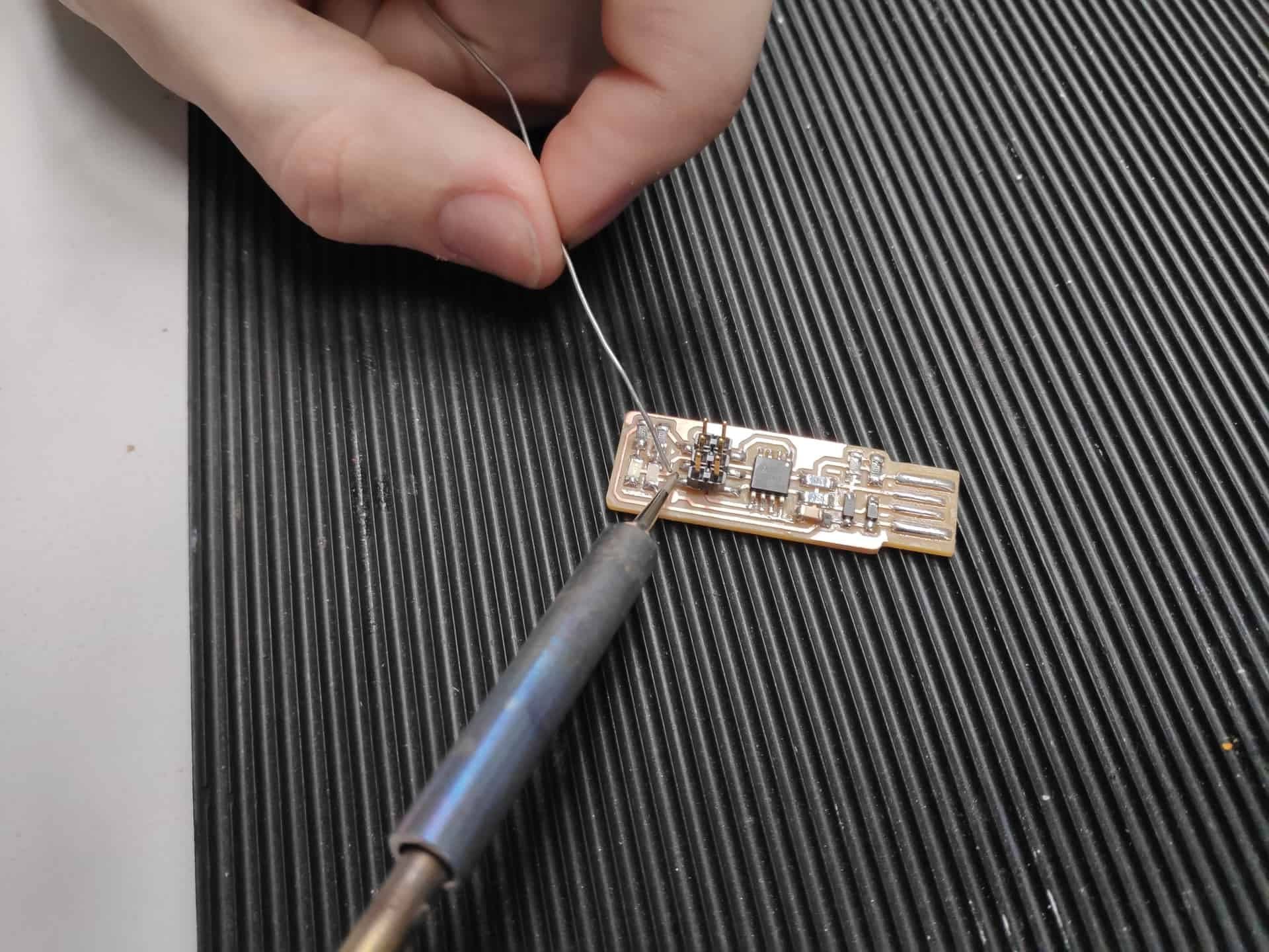 - Prepare the board for soldering by washing it in soapy water to remove any oxidation that may have occurred since milling.